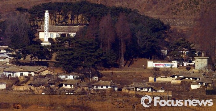 (파주=포커스뉴스) 군 당국의 대북확성기 방송 재개를 앞둔 8일 오전 경기도 파주 오두산 통일전망대에서 바라본 북한 개풍군 마을 주민들이 평온한 모습을 보이고 있다.