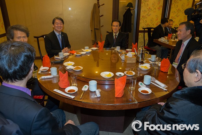 (서울=포커스뉴스) 8일 오후 서울 마포구 한 중식당에서 안철수 무소속 의원이 '2012년 진심캠프' 원년 멤버들과 만찬자리를 갖고 있다.