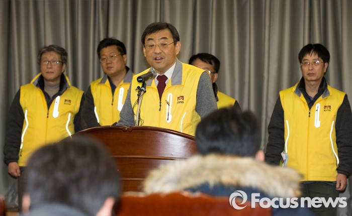 (대전=포커스뉴스) 8일 저녁 대전 유성구 한국원자력안전기술원 중회의실에서 김무환 한국원자력안전기술원장이 북한 핵실험 이후 반사성핵종 탐지·분석 결과 브리핑을 하고 있다.