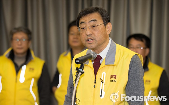 (대전=포커스뉴스) 8일 저녁 대전 유성구 한국원자력안전기술원 중회의실에서 김무환 한국원자력안전기술원장이 북한 핵실험 이후 반사성핵종 탐지·분석 결과 브리핑을 하고 있다.