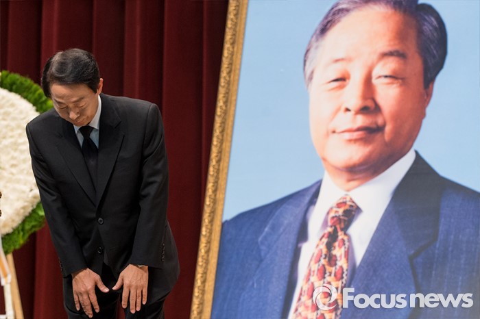 (서울=포커스뉴스) 9일 오후 서울 동작구 국립현충원에서 열린 '김영삼 대통령 추모 부활 성시 기념예배'에서 차남 김현철 씨가 참석자들에게 인사하고 있다.
