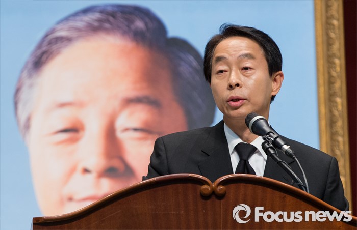 (서울=포커스뉴스) 9일 오후 서울 동작구 국립현충원에서 열린 '김영삼 대통령 추모 부활 성시 기념예배'에서 차남 김현철 씨가 참석자들에게 감사의 말을 전하고 있다.