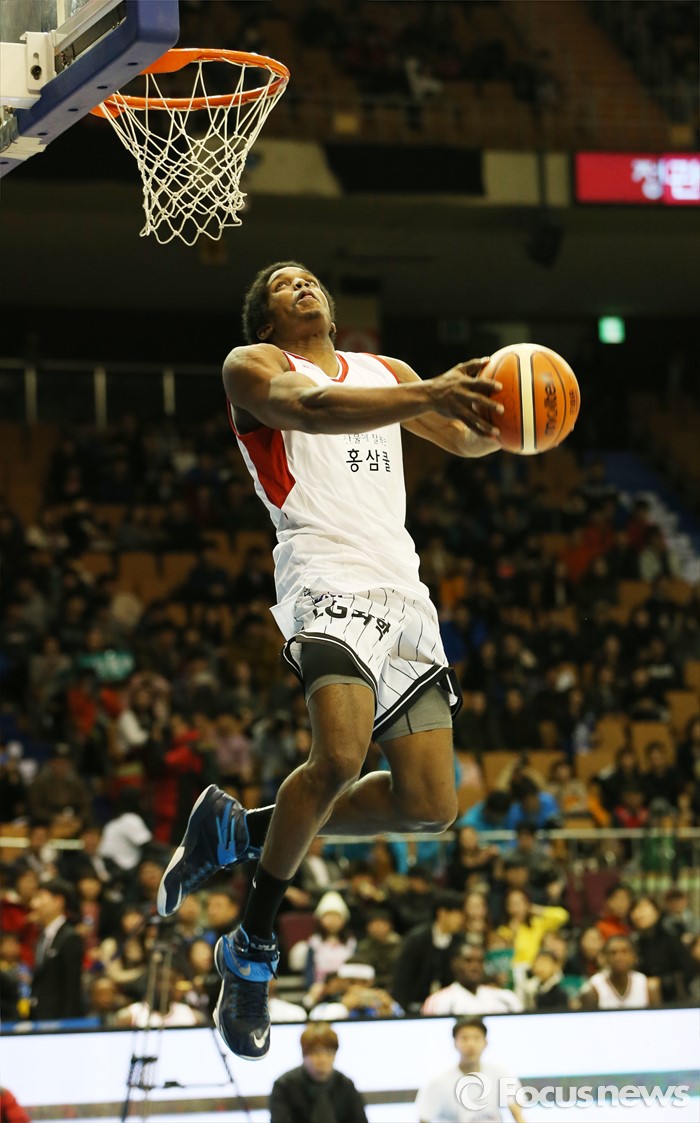 (서울=포커스뉴스) 10일 서울 잠실실내체육관에서 열린 2015-2016 프로농구 올스타전 덩크슛 콘테스트 예선에서 샤크 맥키식이 백덩크슛을 시도하고 있다.