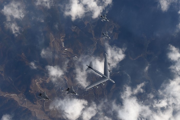 | △ 한반도 상공 비행하는 미 공군 전략폭격기 |