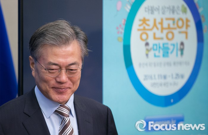 (서울=포커스뉴스) 문재인 더불어민주당 대표가 11일 오전 서울 여의도 국회에서 열린 최고위원회의에 앞서 20대 총선 공약 공모 마켓인 '정감마켓' 커뮤니티를 취재진에게 소개한 뒤 자리로 향하고 있다.