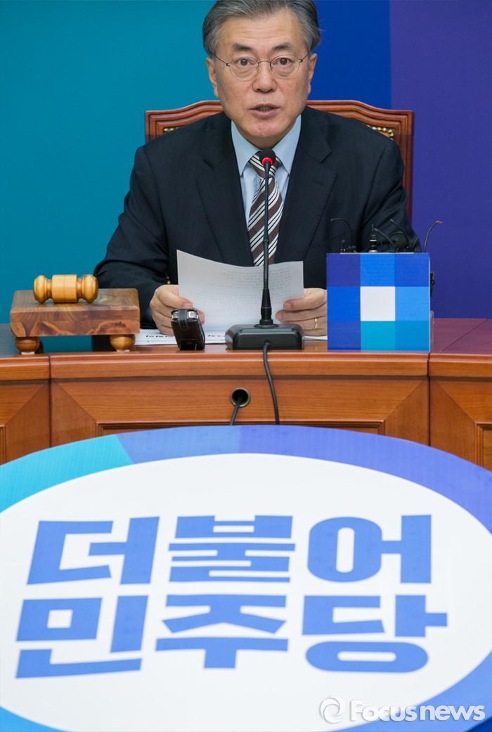 (서울=포커스뉴스) 문재인 더불어민주당 대표가 11일 오전 서울 여의도 국회에서 열린 최고위원회의에 참석해 모두발언을 하고 있다.