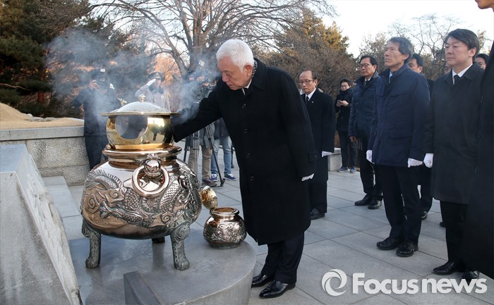 (서울=포커스뉴스) '국민의당' 창당을 추진하는 김한길 의원이 11일 오전 서울 동작구 국립서울현충원 박정희 전 대통령 묘소를 찾아 분향하고 있다.
