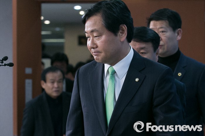 (서울=포커스뉴스) 김관영 더불어민주당 의원이 11일 오전 서울 여의도 국회 정론관에서 거취표명 기자회견을 위해 입장하고 있다.