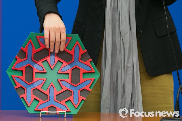 (서울=포커스뉴스) 11일 오후 서울 여의도 국회 더불어민주당 당대표회의실에서 김빈 디자이너가 입당 기자회견을 마치고, 자신의 작품을 설명하고 있다.