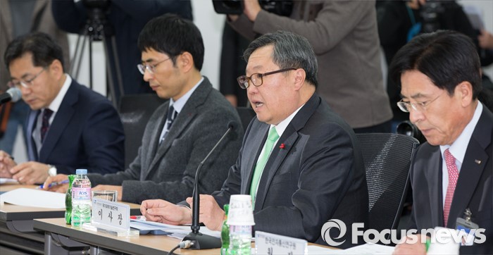 (대전=포커스뉴스) 황교안 국무총리가 11일 대전 유성구 융합기술연구생산센터를 방문, 출연연-중소·중견기업과 간담회에서 이상천(오른쪽 두 번째) 국가과학기술연구회이사장으로부터 보고를 받고 있다.