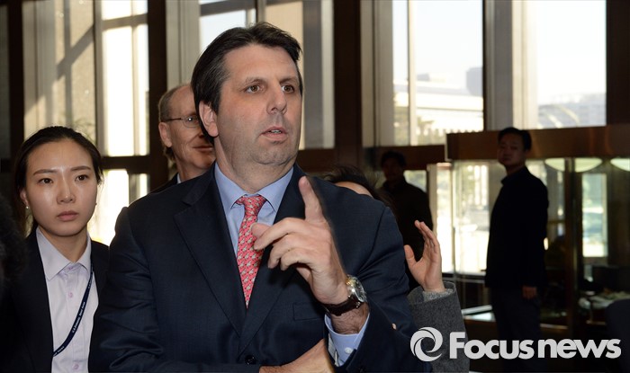 (서울=포커스뉴스) 마크 리퍼트 주한미국대사가 11일 오후 서울 여의도 국회 외교통일위원회에서 열리는 북한 핵실험 관련 간담회에 참석하기 위해 이동하고 있다.