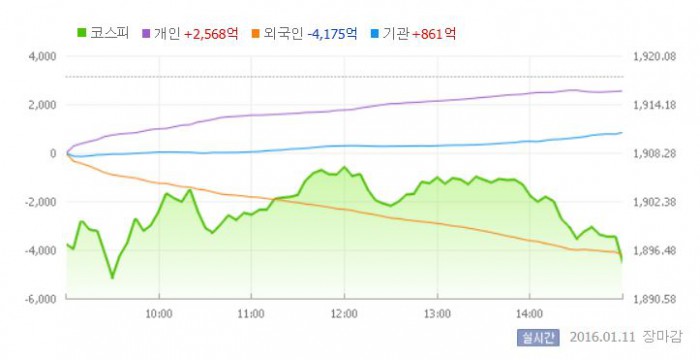 이날 코스피는 전거래일 대비 1.07% 하락한 1897.18로 장을 시작했다. 이후 지수는 장중 1900선을 회복했지만 외국인의 팔자세로 등락을 거듭했다.