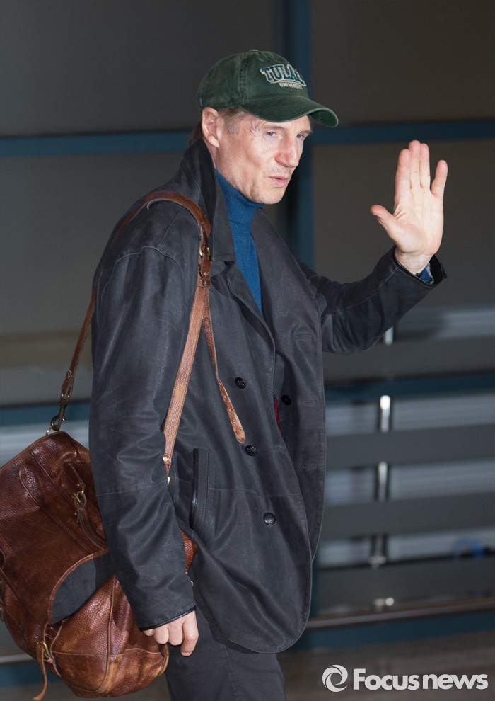 (인천=포커스뉴스) 할리우드 배우 리암 니슨이 영화 '인천상륙작전' 촬영을 위해 11일 오후 인천 중구 인천국제공항으로 입국하고 있다.