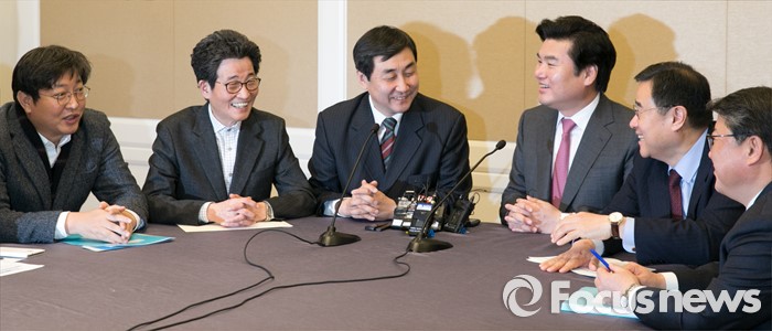 다음 여야 원내지도부 회동 일정은 잡히지 않았다.11일 오전 서울 여의도 국회 귀빈식당에서 20대 총선 선거구 획정 기준 및 쟁점 법안 논의를 위해 진행된 여야 원내지도부 회동에 참석한 의원들이 대화하고 있다. 왼쪽부터 이춘석 더불어민주당 원내수석부대표, 이목희 정책위의장, 이종걸 원내대표, 원유철 새누리당 원내대표, 김정훈 정책위의장, 조원진 원내수석부대표. 2016.01.11 박동욱 기자