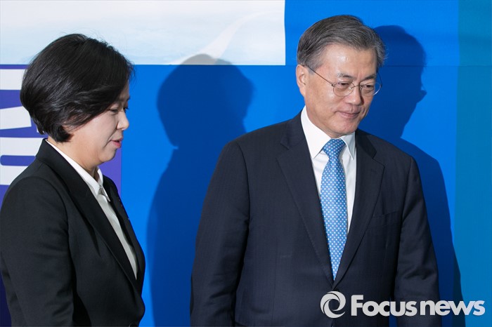 (서울=포커스뉴스) 양향자(왼쪽) 전 삼성전자 상무가 12일 오전 서울 여의도 국회 더불어민주당 당대표실에서 입당 기자회견을 마치고 문재인 대표와 퇴장하고 있다. 양 전 상무는 삼성전자 최초의 고졸여성 임원으로 삼성전자 메모리사업부 플래시 개발실 상무를 역임했다.