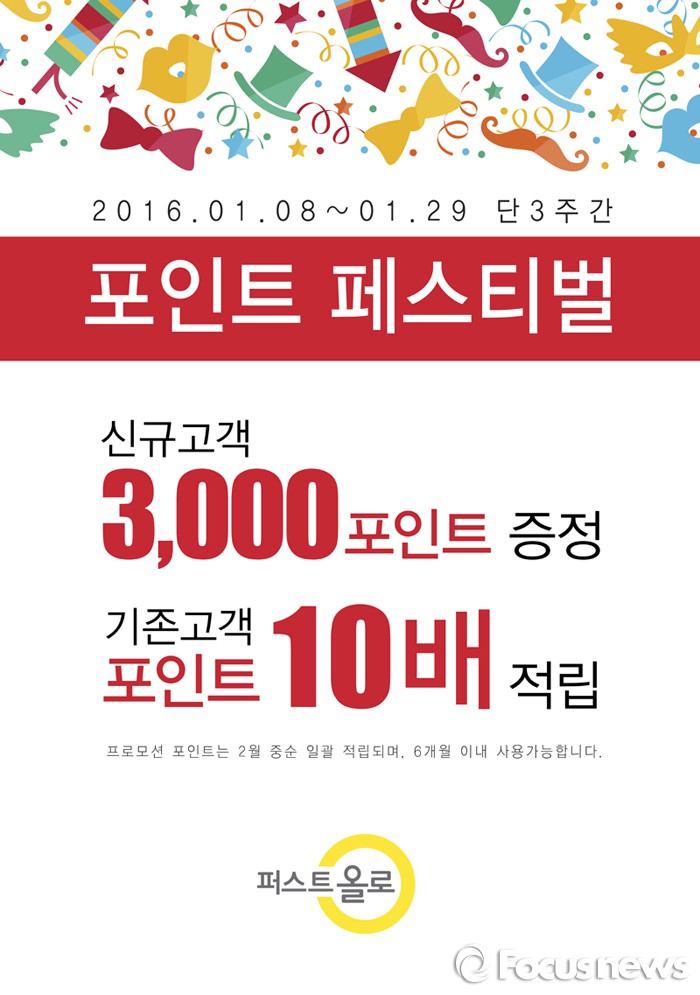 (서울=포커스뉴스) 좋은사람들의 라이프 스타일숍 퍼스트올로는 신년을 맞아 전품목 30% 할인과 포인트의 10배를 적립하는 고객 이벤트를 개최한다고 12일 밝혔다.