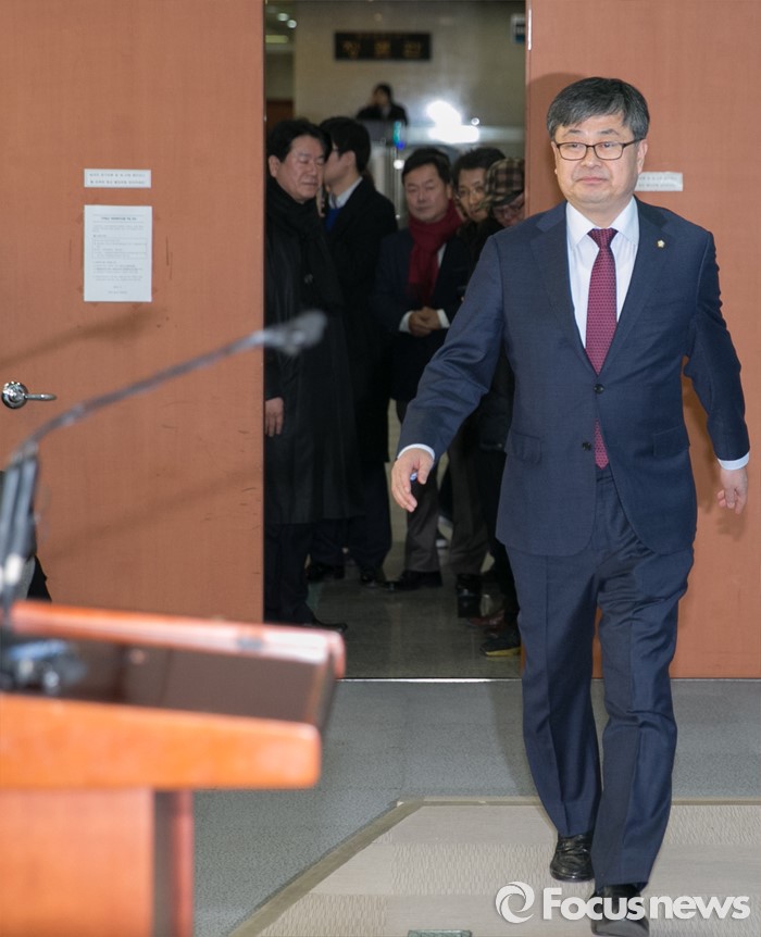 (서울=포커스뉴스) 최원식 더불어민주당 의원이 12일 오전 서울 여의도 국회 정론관에서 탈당 및 국민의당 합류 기자회견을 위해 입장하고 있다.