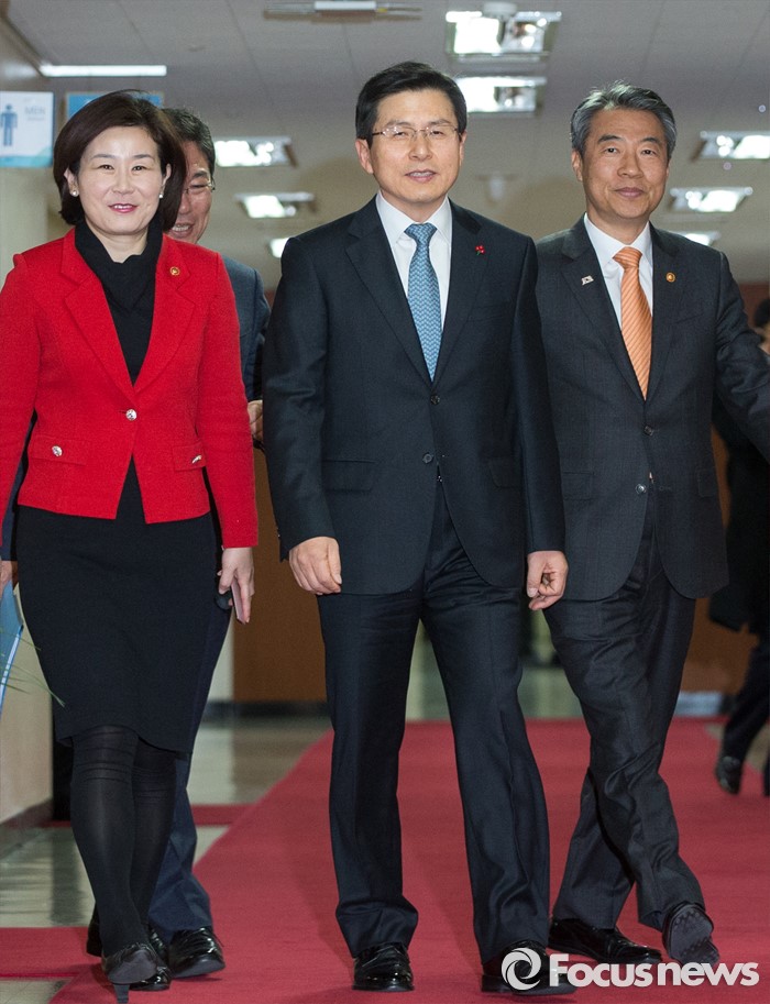 (서울=포커스뉴스) 12일 오전 서울 종로구 정부서울청사에서 열린 국무회의에 황교안 국무총리를 비롯한 국무위원들이 입장하고 있다.