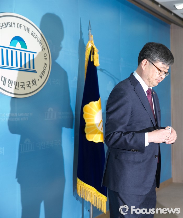 (서울=포커스뉴스) 최원식 더불어민주당 의원이 12일 오전 서울 여의도 국회 정론관에서 탈당 및 국민의당 합류 기자회견을 마친 뒤 인사하고 있다.