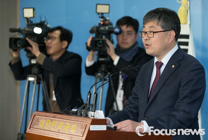 (서울=포커스뉴스) 최원식 더불어민주당 의원이 12일 오전 서울 여의도 국회 정론관에서 탈당 및 국민의당 합류 기자회견을 하고 있다.