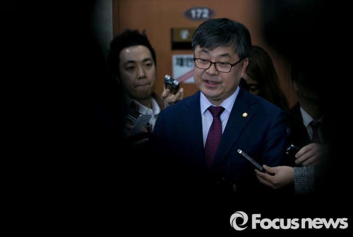 (서울=포커스뉴스) 최원식 더불어민주당 의원이 12일 오전 서울 여의도 국회 정론관에서 탈당 및 국민의당 합류 기자회견을 마친 뒤 취재진 질문에 답하고 있다.
