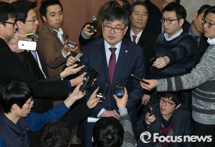 (서울=포커스뉴스) 최원식 더불어민주당 의원이 12일 오전 서울 여의도 국회 정론관에서 탈당 및 국민의당 합류 기자회견을 마친 뒤 취재진 질문에 답하고 있다.