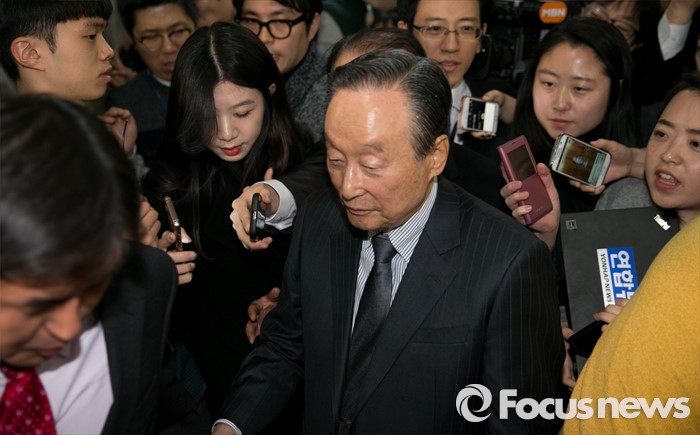 | △ 탈당 회견 마치고 나서는 권노갑 |
