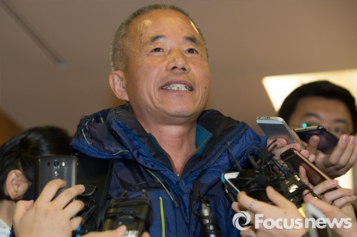 (서울=포커스뉴스) 12일 오전 서울 서대문구 충정로 법무법인 지평 회의실에서 열린 '삼성전자 반도체 등 사업장에서의 백혈병 등 질환 발병과 관련한 문제 해결을 위한 조정위원회'에서 최종 합의서에 서명을 마친 황상기 반올림 대표가 취재진의 질문에 답변을 하고 있다.