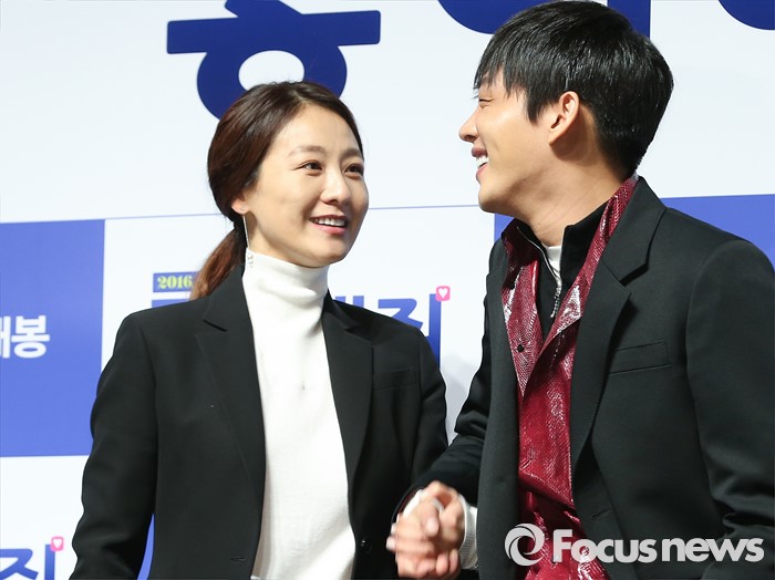 (서울=포커스뉴스) 12일 오전 서울 강남구 압구정 CGV에서 열린 영화 '좋아해줘' 제작보고회에 참석한 배우 이미연(왼쪽)과 유아인이 포토타임을 갖고 있다.