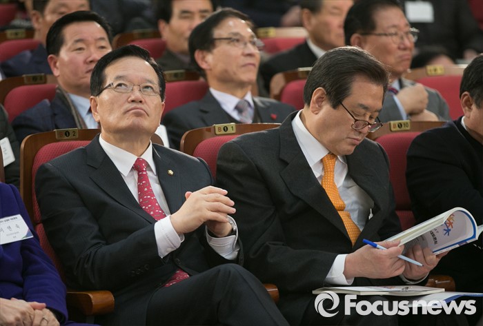 (서울=포커스뉴스) 12일 오후 서울 여의도 국회 의원회관에서 열린 주민자치 실질화 대토론회에 참석한 정의화(왼쪽) 국회의장과 김무성 새누리당 대표가 자리하고 있다.