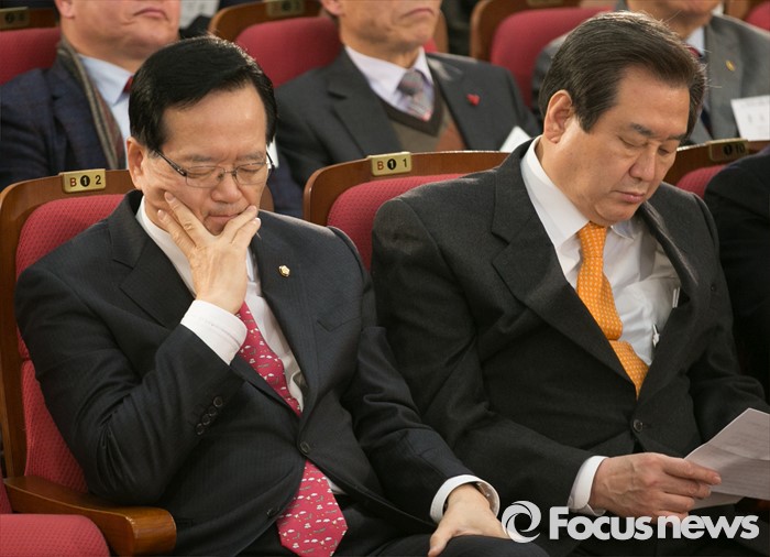 (서울=포커스뉴스) 12일 오후 서울 여의도 국회 의원회관에서 열린 주민자치 실질화 대토론회에 참석한 정의화(왼쪽) 국회의장과 김무성 새누리당 대표가 자리하고 있다.