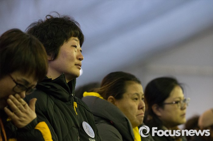 (안산=포커스뉴스) 12일 오후 경기도 안산시 세월호 사고 희생자 정부 합동분향소에서 유가족 및 시민들이 416 추모식을 하고 있다.