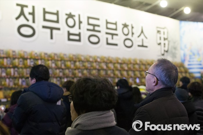 (안산=포커스뉴스) 12일 오후 경기도 안산시 세월호 사고 희생자 정부 합동분향소에서 유가족 및 시민들이 416 추모식을 하고 있다.