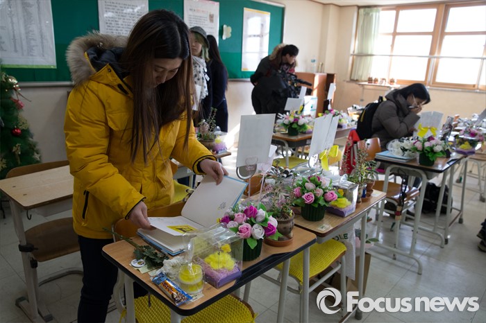 (안산=포커스뉴스) 단원고 생존 학생들의 졸업식이 열린 12일 오후 경기도 안산시 단원고등학교에서 유가족과 시민들이 교실을 둘러보고 있다.
