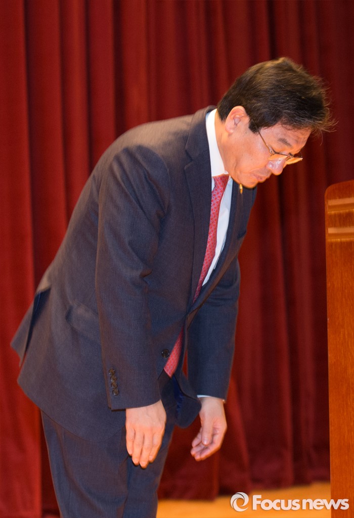 (세종=포커스뉴스) 윤상직 산업통상자원부장관이 12일 오후 세종시 정부세종청사 산업통상자원부 대강당에서 열린 이임식에서 이임사를 마치고 인사를 하고 있다.