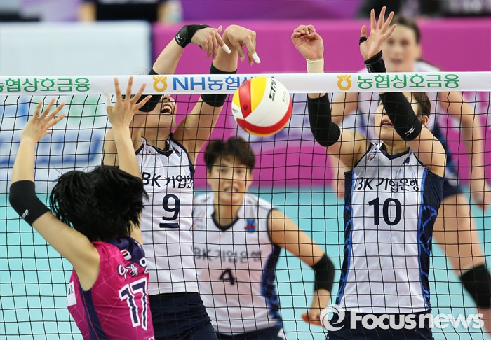 (인천=포커스뉴스) 12일 인천 계양체육관에서 열린 '2015-2016NH농협 V-리그' 여자부 흥국생명-IBK기업은행 경기에서 IBK기업은행 김사니가 네트를 넘어오는 볼을 바로 넘기고 있다.