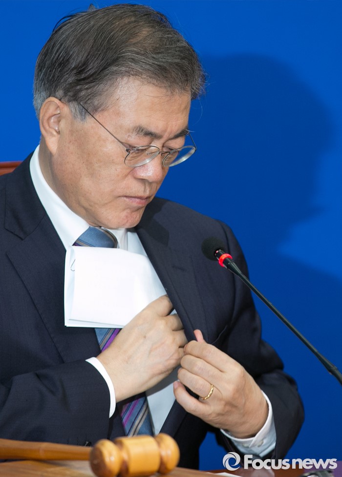 (서울=포커스뉴스) 문재인 더불어민주당 대표가 13일 오전 서울 여의도 국회에서 열린 최고위원회의에 참석해 생각에 잠겨 있다.