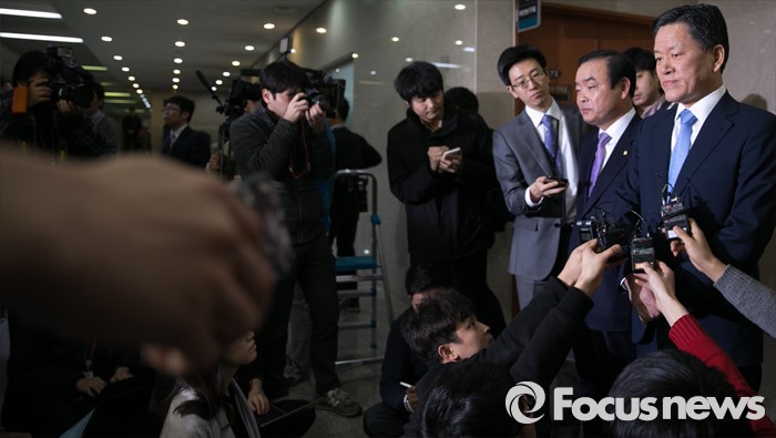 (서울=포커스뉴스) 13일 오전 서울 여의도 국회 정론관에서 장병완(왼쪽), 주승용 더불어민주당 의원이 탈당 기자회견을 마친 뒤 취재진 질문에 답하고 있다.