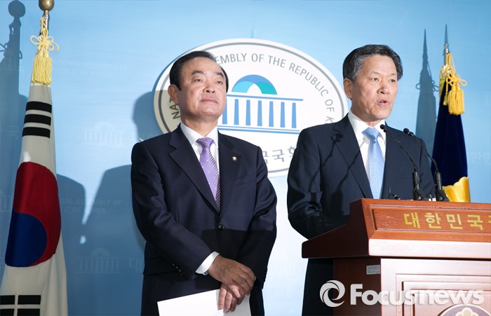 (서울=포커스뉴스) 13일 오전 서울 여의도 국회 정론관에서 장병완(왼쪽), 주승용 더불어민주당 의원이 탈당 기자회견을 하고 있다.