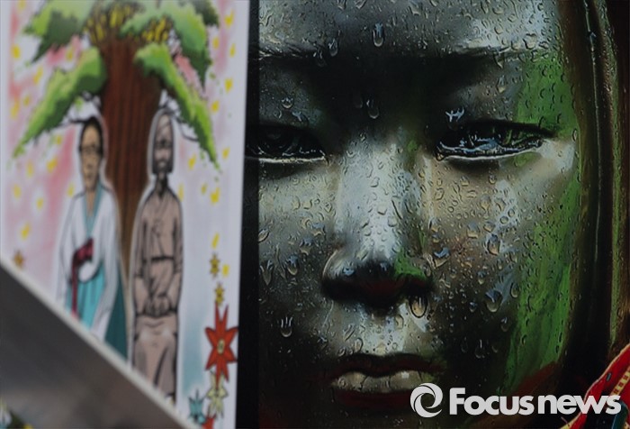 (서울=포커스뉴스) 13일 오후 서울 종로구 구 일본대사관 앞에서 열린 제1213차 일본군 위안부 문제해결을 위한 정기수요집회에서 참가자들이 손피켓을 들고 있다.