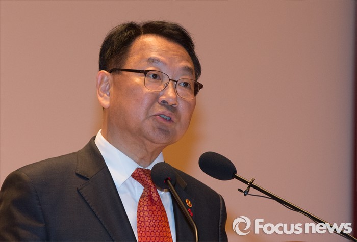 (세종=포커스뉴스) 유일호 신임 경제부총리 겸 기획재정부장관이 13일 오후 세종시 정부세종청사 대강당에서 열린 취임식에 참석해 취임사를 하고 있다.