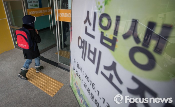(서울=포커스뉴스) 초등학교 신입생 예비소집일인 13일 오후 서울 용산구 이태원초등학교에서 한 예비초등학생이 예비소집일을 맞아 소집 장소로 향하고 있다.