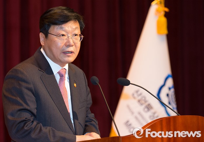(세종=포커스뉴스) 주형환 신임 산업통상자원부장관이 13일 오후 세종시 정부세종청사 산업부 대강당에서 열린 취임식에 참석해 취임사를 하고 있다.