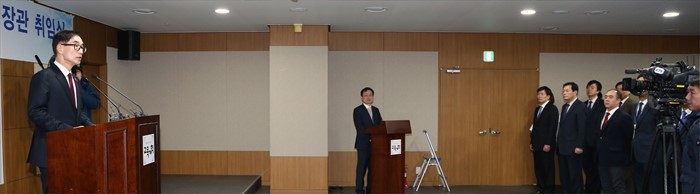 (세종=포커스뉴스) 이준식 신임 사회부총리 겸 교육부장관이 13일 오후 세종시 정부세종청사 교육부 대회의실에서 열린 취임식에서 취임사를 하고 있다. <사진제공=교육부>