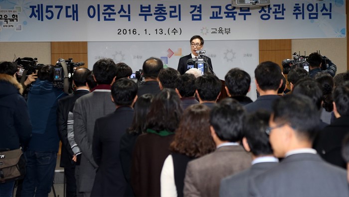 (세종=포커스뉴스) 이준식 신임 사회부총리 겸 교육부장관이 13일 오후 세종시 정부세종청사 교육부 대회의실에서 열린 취임식에서 취임사를 하고 있다. <사진제공=교육부>