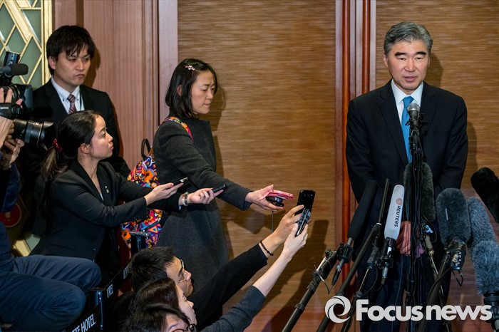 (서울=포커스뉴스) 성 김 미국 국무부 대북정책특별대표가 13일 오후 서울 중구 롯데호텔에서 열린 '한미일 6자회담 수석대표 긴급회동'에 자리해 북한 4차 핵실험 강행 관련 대북제재 방안 논의를 마친 뒤 입장발표를 하고 있다.