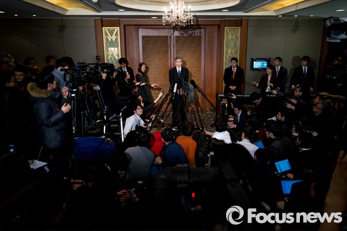 (서울=포커스뉴스) 성 김 미국 국무부 대북정책특별대표가 13일 오후 서울 중구 롯데호텔에서 열린 '한미일 6자회담 수석대표 긴급회동'에 자리해 북한 4차 핵실험 강행 관련 대북제재 방안 논의를 마친 뒤 입장발표를 하고 있다.