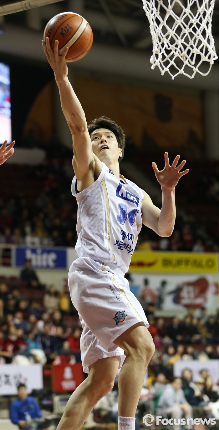 (안양=포커스뉴스) 13일 안양실내체육관에서 열린 2015-2016 프로농구 KGC-KCC 경기에서 KCC 김효범이 레이업슛을 시도하고 있다.