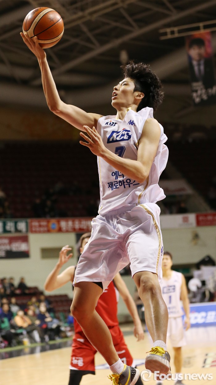 (안양=포커스뉴스) 13일 안양실내체육관에서 열린 2015-2016 프로농구 KGC-KCC 경기에서 KCC 송교창이 레이업슛을 시도하고 있다.