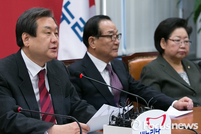 (서울=포커스뉴스) 김무성(왼쪽) 새누리당 대표가 14일 오전 서울 여의도 국회에서 열린 최고위원회의에 참석해 모두발언하고 있다.